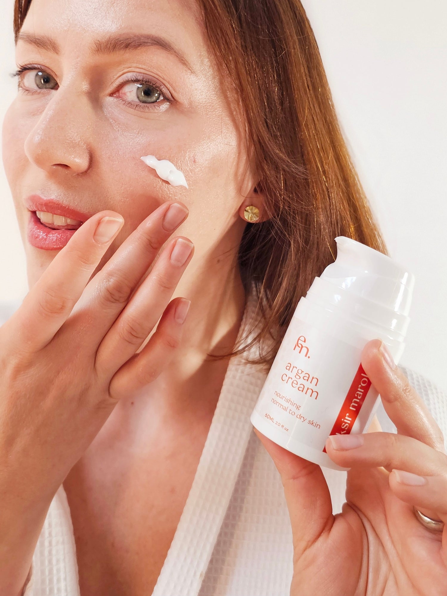 Olej arganowy działa kojąco na skórę, łagodząc podrażnienia i stany zapalne, co czyni go idealnym rozwiązaniem dla osób z wrażliwą skórą.