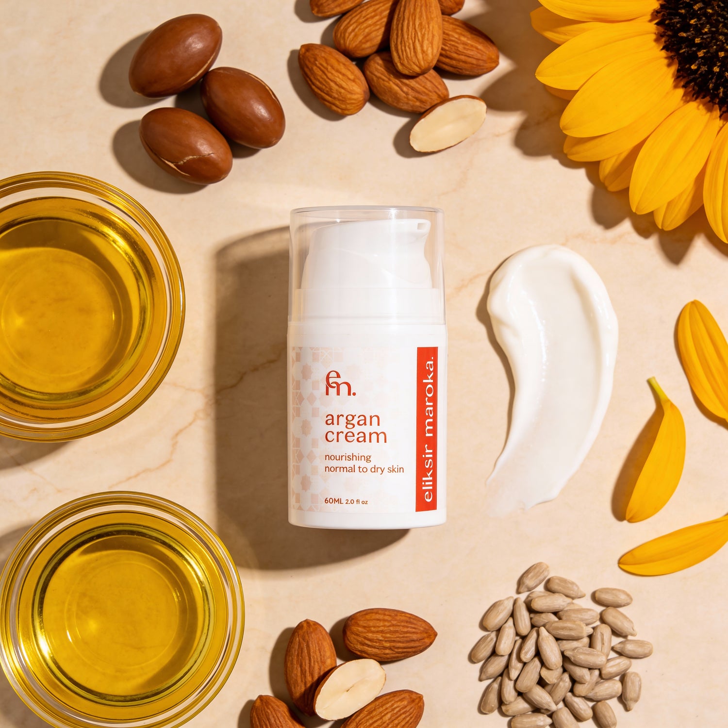 AQUA, PARAFFINUM LIQUIDUM, STEARIC ACID, GLYCERIN, PETROLATUM, CETYL ALCOHOL, CETEARYL ALCOHOL, ARGANIA SPINOSA KERNEL OIL, PRUNUS AMYGDALUS DULCIS OIL, HELIANTHUS ANNUUS SEED OIL, TOCOPHERYL ACETATE, TRIETHANOLAMINE, ETHYLHEXYLGLYCERIN, PHENOXYETHANOL, CARBOMER, PARFUM.