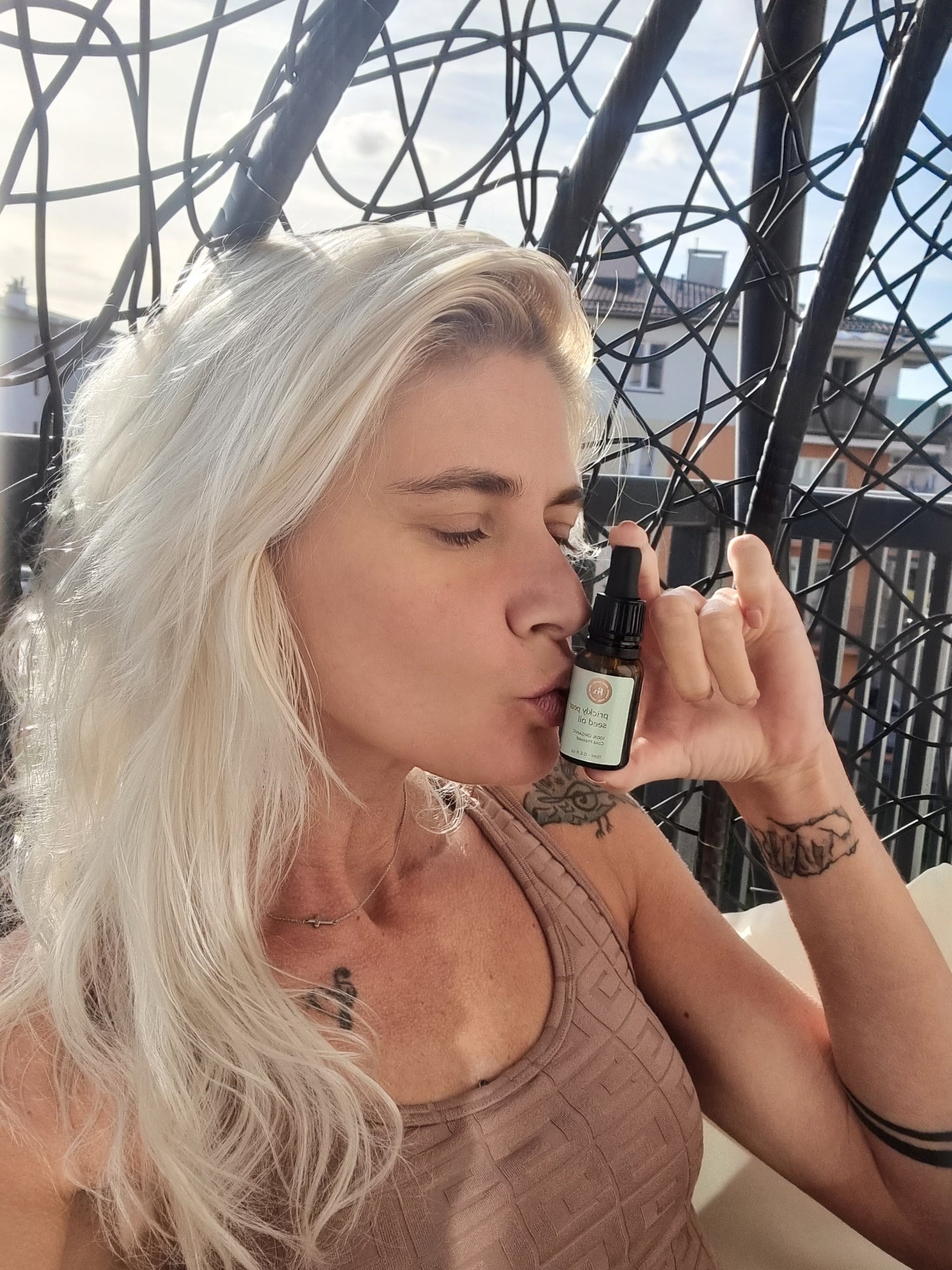 Fenomen Oleju z pestek opuncji figowej polega na tym, żenie zatyka porów i łatwo wnika w głąb skóry. Lubi się nie tylko ze skórą dojrzałą i odwodnioną, ale i genialniesprawdza się przy cerach tłustych czy mieszanych, gdyż reguluje wydzielanie się sebum.Już jedna kroplatego luksusowego olejku odżywia i koi Twoją wrażliwą skórę, zapewniając widoczny blask i zdrowy wygląd bez tłustego wykończenia.