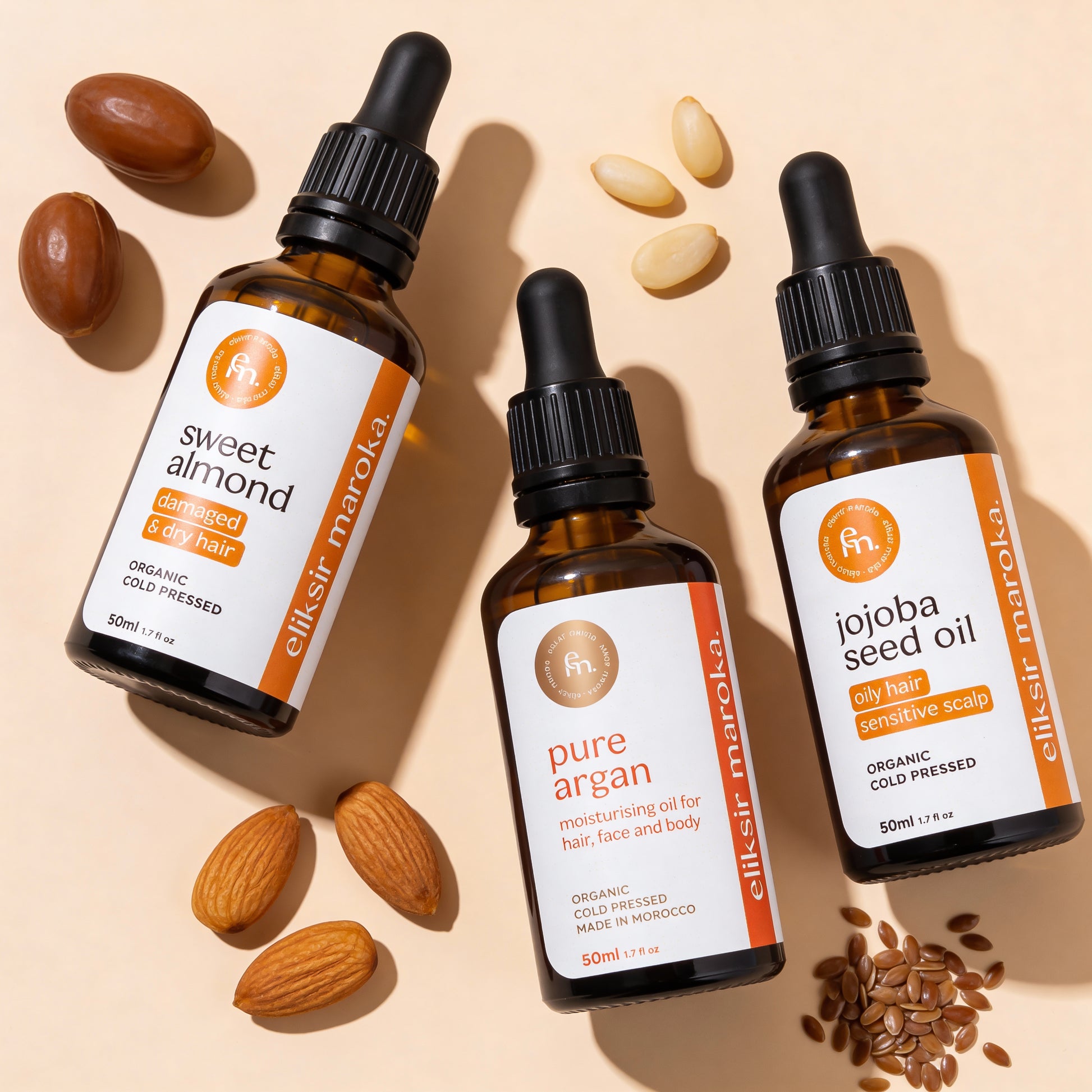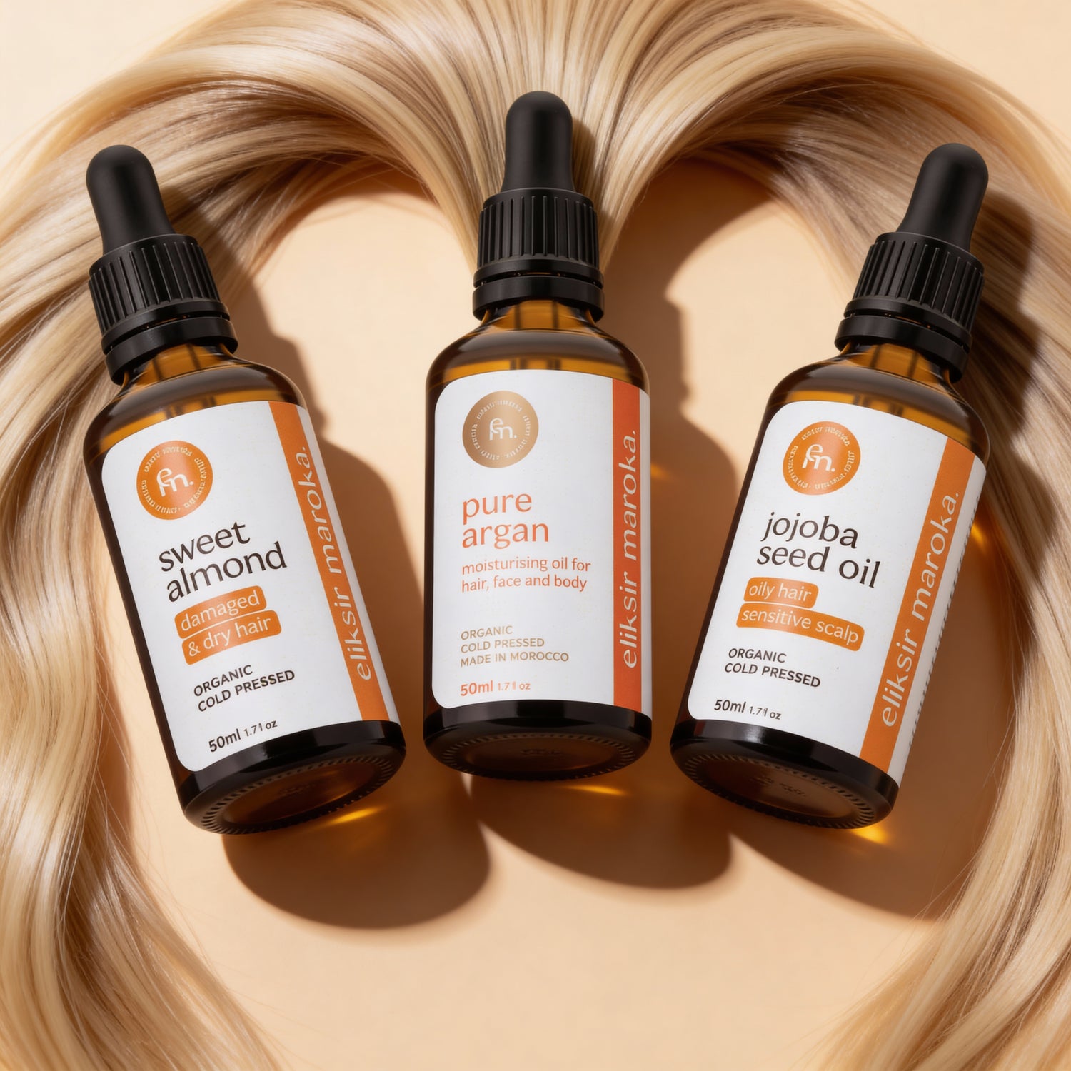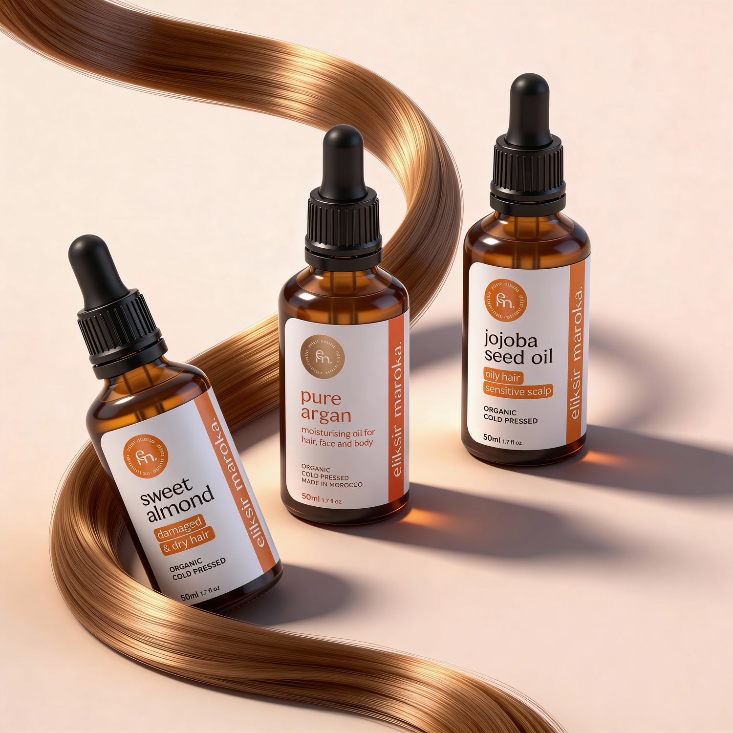3 Oleje. 3 Rozwiązania. Kompletna, naturalna kuracja na każdy problem z włosami.