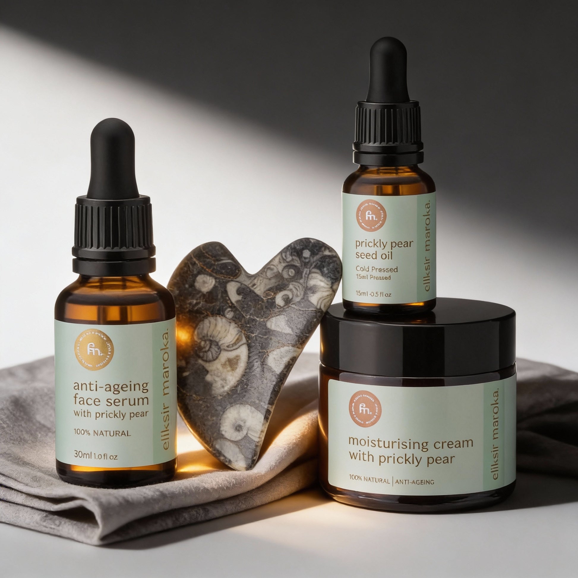Głównym składnikiem Zestawu Złota Pielęgnacja jest olej z pestek opuncji figowej, czyli jeden z najbardziej luksusowych olei na świecie. Znajdziesz w nim: